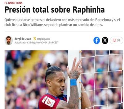 拉菲尼亚本人坚持希望留在巴萨履行合同。然而,如果尼科-威廉姆斯加盟并成为左边锋首发,可能会影响拉菲尼亚的处境。无论如何,这名巴西球员正面临巨大的转会压力,其未来走向仍不明朗。