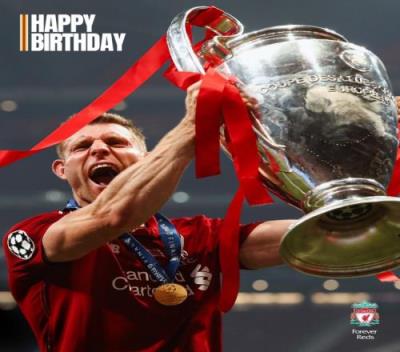 利物浦祝米尔纳39岁生日快乐,球员为红军出战332场斩获7冠