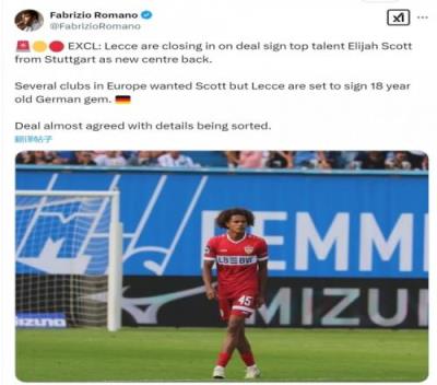 罗马诺指出,多家欧洲俱乐部有意斯图加特中卫斯科特,但莱切接近签下这位18岁的小将。这笔交易基本达成协议,各方正在敲定细节问题。