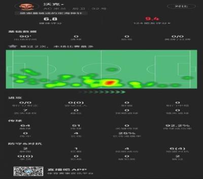沃克米兰首秀数据:贡献2解围4抢断,6次对抗成功4次,被过2次