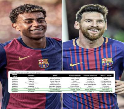体育资讯12月18日报道宣称 2024年FIFA年度最佳颁奖,阿根廷队长梅西的投票顺位为:亚马尔、姆巴佩、维尼修斯。