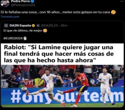体育资讯7月10日报道宣称 今天凌晨,西班牙在欧洲杯半决赛2-1淘汰法国,赛后佩德罗-波罗回应了拉比奥特。