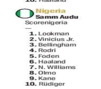尼日利亚记者Samm Audu金球投票: