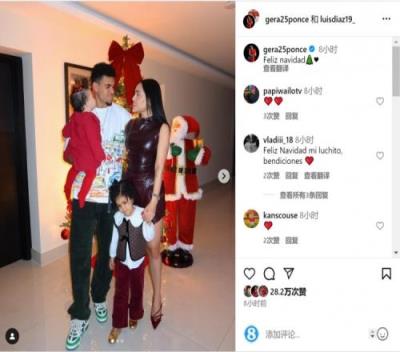 体育资讯12月25日报道宣称 利物浦前锋路易斯-迪亚斯与伴侣格拉更新社媒动态,庆祝圣诞节的到来。