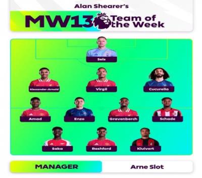 体育资讯12月2日报道宣称 英超第13轮比赛已经全部结束,纽卡名宿希勒评选了本轮英超最佳阵容,其中,率队完胜曼城的斯洛特挂帅,萨卡、拉什福德在列,恩佐、阿诺德、范迪克等人入选。