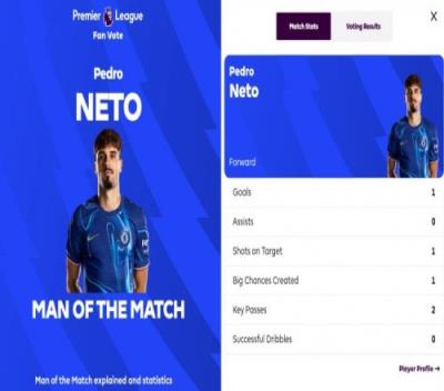 体育资讯11月11日报道宣称 英超第11轮焦点战,切尔西主场1-1战平阿森纳。赛后,切尔西前锋内托当选了本场的最佳球员。
