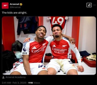 体育资讯2月5日报道宣称 本赛季,18岁的斯凯利和17岁的恩瓦内里发挥出色。据名记罗马诺报道,阿森纳在和两名小将续约方面取得了积极进展。