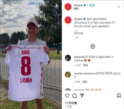 体育资讯7月20日报道宣称 德国中场克罗斯在社交媒体上表示,祝福科隆新赛季取得成功。