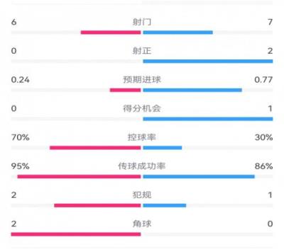 体育资讯1月30日报道宣称 欧冠末轮,曼城半场0-1落后布鲁日,若不胜曼城将被淘汰。双方半场重点数据对比如下↓(主队曼城在前,客队布鲁日在后)
