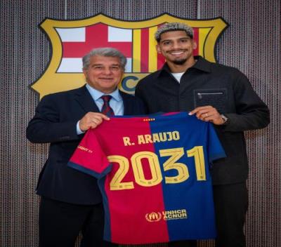 体育资讯1月24日报道宣称 巴萨在今日官宣,和乌拉圭中卫阿劳霍续约至2031年。
