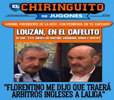 体育资讯01月29日报道宣称 西班牙足协新任主席卢赞(Rafael Louzán)参加六台节目,接受了六台主持人何塞普-佩德雷罗的采访。他在采访中透露了弗洛伦蒂诺对裁判问题的看法。