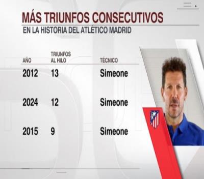 马竞队史连胜场次榜:2012年13连胜居首,今年12连胜次席