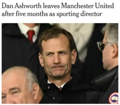 体育资讯12月08日报道宣称 据TA报道,加盟曼联5个月后,球队总监阿什沃斯将离任。