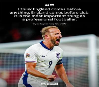 凯恩表示:“我认为英格兰比任何事情都重要,英格兰比俱乐部重要,这对职业足球运动员来说是最重要的事。