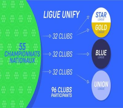 96支男足俱乐部分为4级联赛,分别名为星联赛、金联赛、蓝联赛以及联合联赛。星联赛和金联赛各有16支球队,而蓝联赛以及联合联赛分别有32支球队。俱乐部之间将以主客场8队一组的方式进行比赛,保证每个赛季每队至少进行14场比赛。