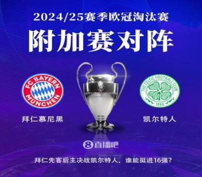 体育资讯1月31日报道宣称 2024-25赛季欧冠淘汰赛阶段附加赛抽签结果出炉,拜仁将先客后主交手凯尔特人,角逐16强名额。