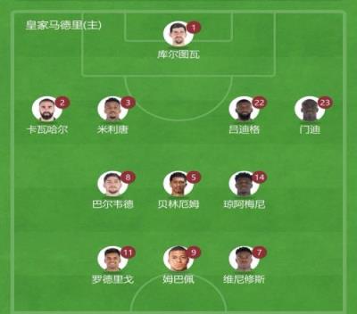后防五人全员“老将”:库尔图瓦(32岁)、卡瓦哈尔(32岁)、米利唐(26岁)、吕迪格(31岁)、费兰-门迪(29岁)