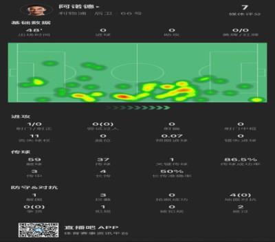 阿诺德上半场主要数据↓