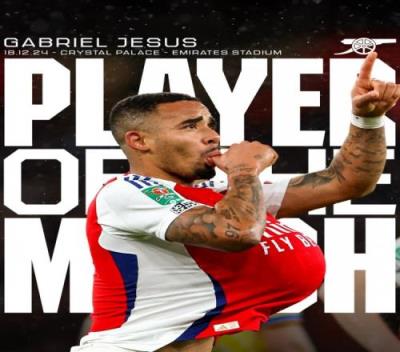 阿森纳官推今日更新,晒出了热苏斯全场最佳海报并配文写道:“精彩的表现,完全配得上带走比赛用球。昨晚全场最佳,热苏斯当之无愧!”