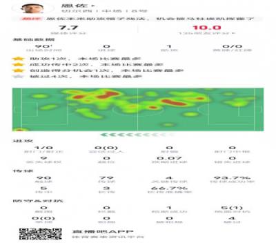 恩佐本场比赛数据:1助攻4关键传球&传球成功率93.7%,评分7.7