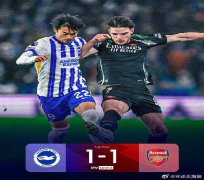 体育资讯1月5日报道宣称 英超第20轮,阿森纳客场1-1战平布莱顿,联赛3连胜终结。