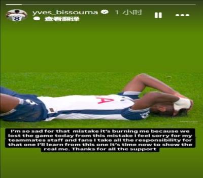 体育资讯12月9日报道宣称 在热刺3-4输给切尔西后,热刺中场比苏马更新了社交媒体,对自己送点进行了道歉。