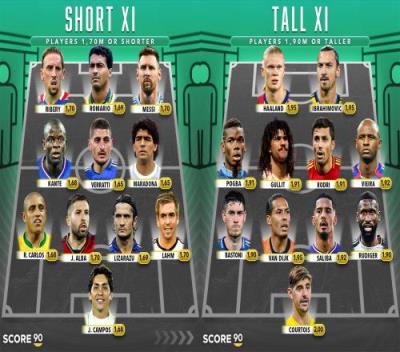 低于1米7小队:豪尔赫-坎波斯、罗伯特-卡洛斯、阿尔巴、利扎拉祖、拉姆、坎特、维拉蒂、马拉多纳、里贝里、梅西、罗马里奥