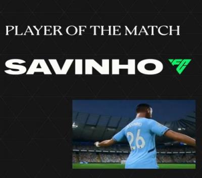 体育资讯1月5日报道宣称 本轮英超比赛中,曼城4-1大胜西汉姆。赛后,曼城官方宣布,萨维尼奥当选队内全场最佳球员。