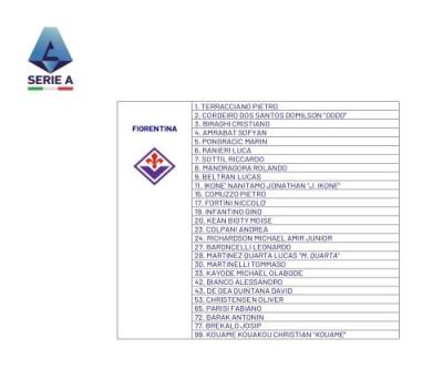 要转会意甲官方公布佛罗伦萨递交的球衣号,10号冈萨雷斯不在列