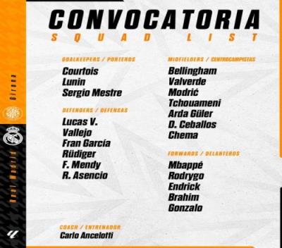 皇马客战赫罗纳大名单:姆巴佩继续领衔锋线,维尼修斯缺席