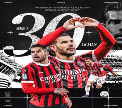 体育资讯1月15日报道宣称 本轮意甲,米兰2-1客胜科莫。赛后,此役完成进球,一共打进30球超越马尔蒂尼,成为米兰队史意甲进球最多后卫的特奥接受DAZN采访。