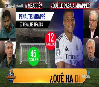 皇马一周内三场比赛都获得点球,姆巴佩在客战利物浦和毕尔巴鄂竞技的比赛中罚丢。