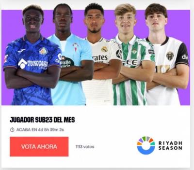 体育资讯1月23日报道宣称 西甲官方公布了1月最佳U23球员的提名名单。其中,贝林厄姆领衔。