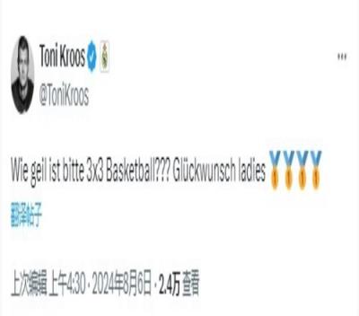 德国足坛名宿克罗斯也发文祝贺:“三人篮球多酷啊???祝贺女士们”。