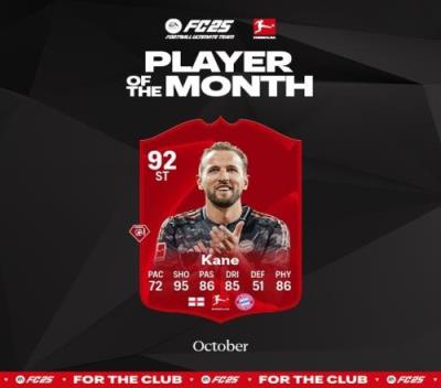 体育资讯11月14日报道宣称 德甲官方宣布,凯恩当选为10月德甲最佳球员。在上个月,凯恩共出战4场联赛,贡献6球1助攻,帮助拜仁取得3胜1平的战绩。