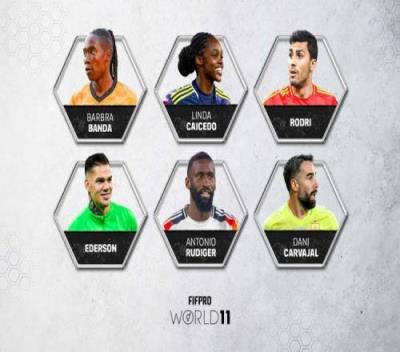 6名男女足球员首次入选FIFPRO年度最佳阵,罗德里、吕迪格在列