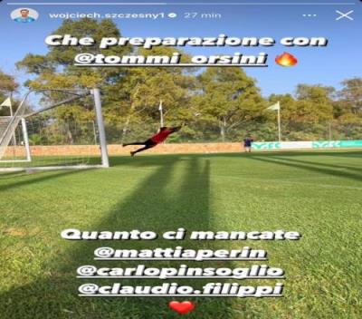 什琴斯尼在近日晒出了自己进行训练的照片,并且配文还写道:“好想念佩林、平索利奥和克劳迪奥-菲利普(尤文的门将教练)。”