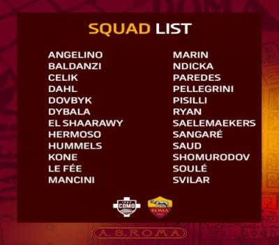 罗马公布战科莫大名单:迪巴拉&多夫比克领衔锋线,胡梅尔斯在列
