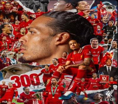 利物浦官推也为范迪克制作300场纪念海报,配文写道:“我们的中卫,我们的4号,我们队长第300次出场里程碑!”