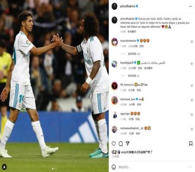 体育资讯2月7日报道宣称 皇马传奇左后卫马塞洛已经官宣退役,曾在皇马和他共事过的右后卫阿什拉夫通过社媒送上祝福。