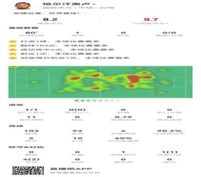 恰尔汗奥卢本场1球+4关键传球5传中4成功10长传6成功获评8.2分