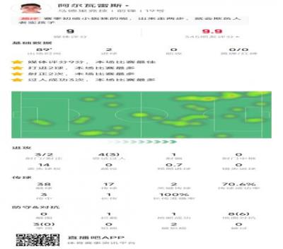 阿尔瓦雷斯本场比赛数据: